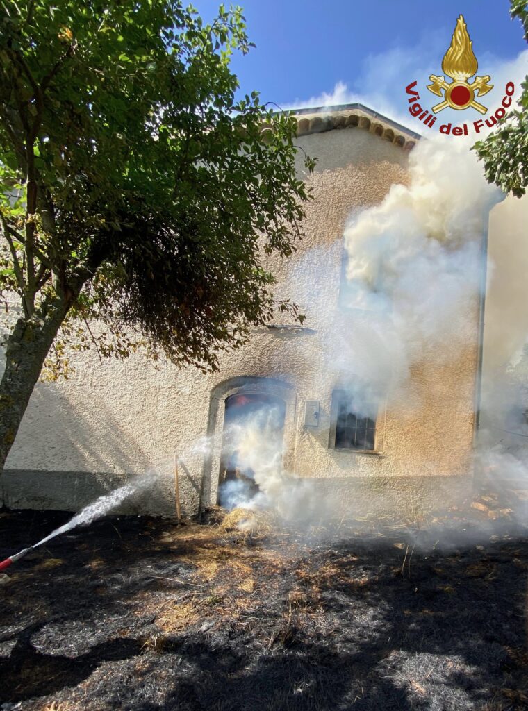 L’incendio, originatosi da un focolaio di sterpaglie, ha rapidamente interessato un tratto montano della zona, propagandosi fino a raggiungere un casolare adibito a rimessa agricola con annesso fienile. Quest’ultimo è stato completamente avvolto dalle fiamme.