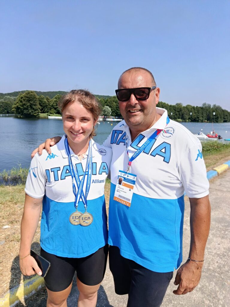 La rassegna continentale per le categorie giovanili è da sempre un’appuntamento vincente per i colori cremisi, infatti anche quest’anno erano presenti in Squadra Azzurra Sette Atleti, accompagnati dal Tecnico delle Fiamme Oro e della Nazionale Italiana Ass.C. Monte Angelo. Gli Atleti hanno conquistato tre Medaglie d’Oro, una d’Argento ed un Bronzo, oltre ad altri importanti piazzamenti in tutte le Finali A. Per la categoria Junior l’astro nascente della Canoa Canadese Italiana Riccardo Caporuscio, nato e cresciuto nel vivaio del Settore Giovanile di Sabaudia, porta a casa il Titolo di Campione Europeo nel C1 200 metri, lasciando alle sue spalle con sette decimi di distacco il Ceco Oliver Kral e lo Spagnolo Alberto Ruiz. Non accontentandosi di questa straordinaria performance, Caporuscio conquista anche un prezioso Argento nel C1 1000 metri, una Medaglia che ha un sapore prezioso visto che questa distanza è una Disciplina Olimpica e quindi è un risultato che fa ben sperare per il futuro. Il portacolori delle Fiamme Oro si piazza alle spalle dell’Ungherese Marenec-Dozsa ma supera nettamente al traguardo l’Atleta della Repubblica Ceca Novacek, che giunge Terzo. Posizione d’onore in campo femminile per l’Ag. Della Giustina Olympia che si laurea per ben due volte Campionessa Europea, nel C1 200 e nel C1 500 Under 23 Femminile. La giovane pagatrice originaria di Padova, mette la sua firma sulle due distanze rendendosi protagonista di un vero capolavoro tricolore. Nei 200 metri, Distanza Olimpica, si mette alle spalle l’Ungherese Dora Horany e la Francese Chloe Nicot, mentre nei 500 metri stacca di due secondi ancora una volta l’Ungherese Horany che si piazza Seconda e l’Azera Smylovenko giunge Terza. Un’altra Medaglia per l’Italia arriva ancora dall’Ag. Della Giustina che nel C4 Under23 Mix conquista il Bronzo insieme al compagno di squadra delle Fiamme Oro Samuele Veglianti e ad Angela Voltan e Marco Tontodonati. Altri importanti piazzamenti giungono da Valerio Roscioli che conquista due ottimi Quinti Posti, uno nel C2 500 Junior (Distanza Olimpica) in coppia con Riccardo Caporuscio e l’altro nel C4 500 Junior Mix insieme a Samuele Vona delle Fiamme Oro e ad Elena Voltan e Francesca Farinazzo, ed un Nono Posto nel C1 Junior 500 Metri. Ottimi risultati anche sulla lunga distanza dei 1000 metri per il C1 Under23 di Samuele Veglianti, che si piazza nella Top Five conquistando il Quinto Posto, e per il C2 Junior di Samuele Vona ed Antonio Quattrociocchi che si piazzano in Nona Posizione. Buon risultato anche nella combattutissima gara del C2 Under 23 Maschile 500 Metri, dove l’Ag. Szela Kristian Szymon insieme a Samuele Veglianti, porta a casa un buon Sesto posto.
