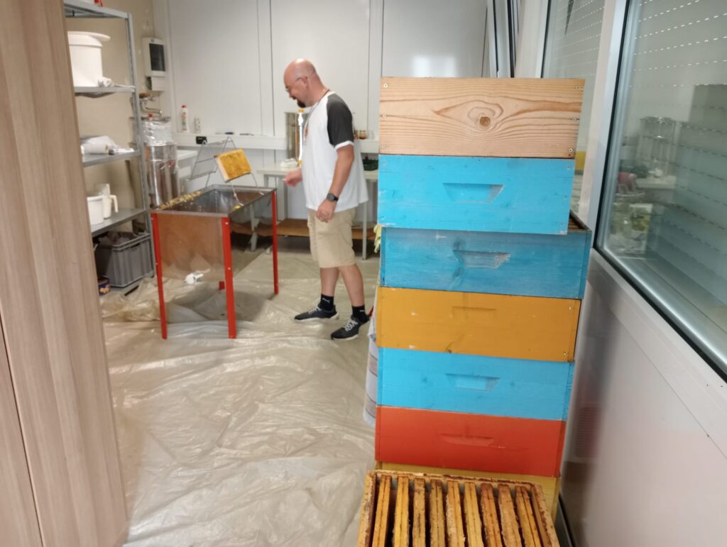 „Wir halten hier seit rund 15 Jahren Bienen“, erklärt der Priester. „Es ist eine richtige Imkerei, die von unseren Jugendlichen betreut wird. Sie schleudern und etikettieren den Honig, lernen nicht nur, wie man ihn herstellt, sondern auch, warum Umweltschutz wichtig ist – und welche Gefahren Bienen durch Pestizide und Umweltverschmutzung drohen.“