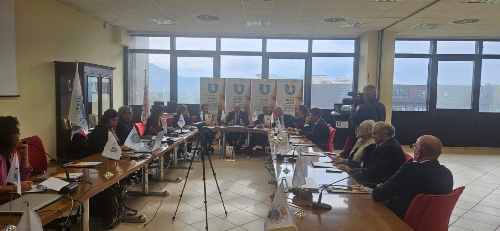 Ne sono consapevoli il Rettore dell’Università di Cassino e del Lazio Meridionale Marco Dell’Isola, il Sindaco Enzo Salera, l’Assessora Regionale allo sport Elena Palazzo, l’Assessora allo sport del comune di Cassino Maria Concetta Tamburrini, l’Assessore regionale Pasquale Ciacciarelli, la Presidente del Consiglio comunale Barbara Di Rollo, il Presidente della BPC Vincenzo Formisano, la Professoressa Cristina Corstis, delegata del rettore per Sport e Salute, l’Assessore comunale alla manutenzione Pierluigi Pontone, la Consigliera FEDERCUSI Flaminia Calce, la Professoressa Giovanna Calise De Rosa ed ovviamente il fautore di tutto, colui che ha creduto, voluto e reso possibile questo progetto, il Presidente del CUS Cassino Carmine Calce. Si sono ritrovati tutti intorno ad un tavolo, nella sala consiliare del Rettorato per discutere di questo ed altri progetti che hanno come unico obiettivo la valorizzazione del territorio e la promozione del benessere della collettività. Senza colori politici, tutti uniti in un grande gioco di squadra perché consapevoli che solo così si possono ottenere grossi risultati. Ad aprire i lavori, in qualità di padrone di casa, il Rettore Dell’Isola che ha ringraziato gli illustri ospiti per aver compreso l’importanza dell’iniziativa che vede l’Università in prima fila per la realizzazione e ha dato la parola all’Assessora allo sport della Regione Lazio Elena Palazzo che nonostante gli impegni in regione ha voluto essere presente per manifestare la sua piena approvazione per l’iniziativa.” La Regione Lazio – ha dichiarato – è al fianco di questo grande evento, che esalta lo sport come motore di crescita del turismo e dello sviluppo economico. Sarà un volano per la promozione sportiva tra i giovani e una straordinaria occasione di crescita per Cassino e tutto il territorio circostante. Un sincero grazie al Rettore, al presidente del CUS, al Sindaco e a tutti coloro che stanno lavorando con impegno alla realizzazione di questa manifestazione. Faremo la nostra parte affinché questi Mondiali diventino un’occasione di orgoglio e di rilancio per tutta la regione”. L’assessora ha poi annunciato un altro evento che coinvolgerà il territorio. Si tratta dei “Cammini Divini”, un progetto che toccherà vari territori del Lazio, a cominciare dall’Abbazia di Montecassino e che è finalizzato a legare i percorsi spirituali con la tradizione enogastronomica.