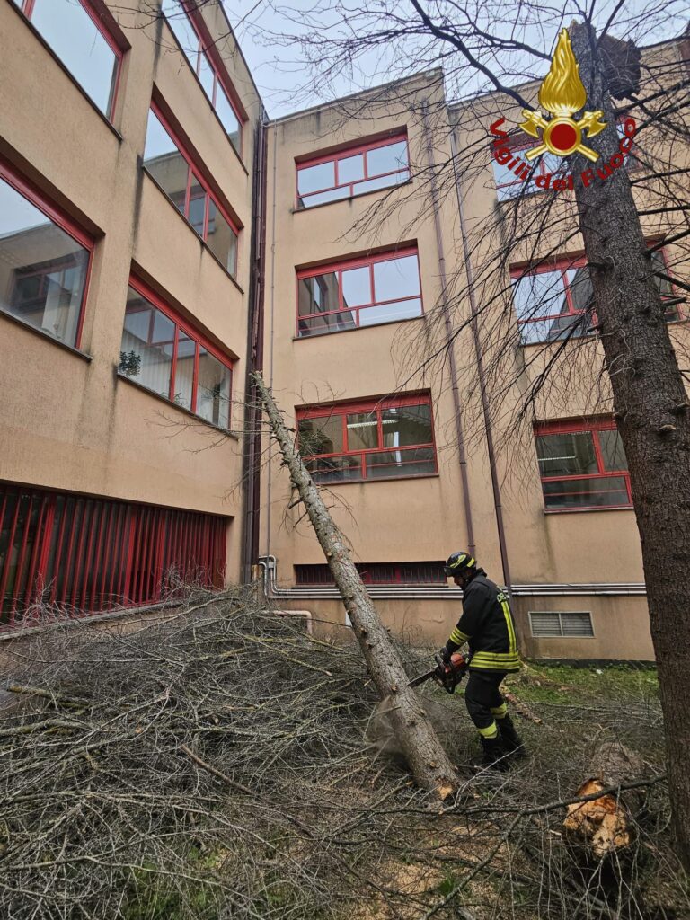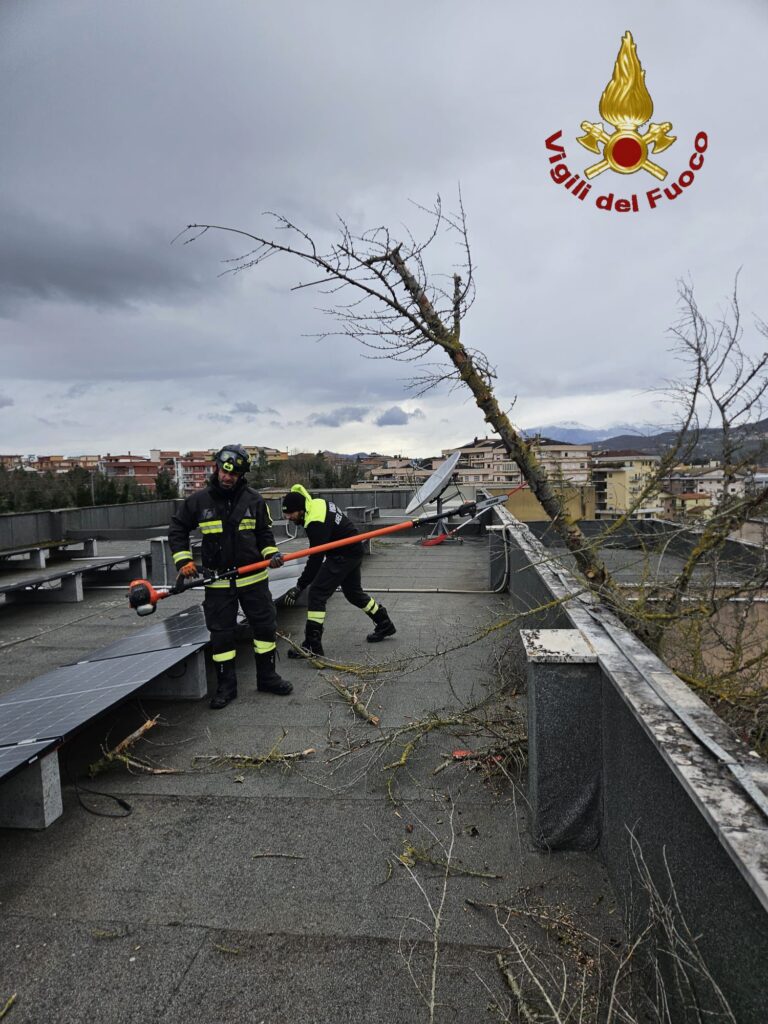 Tra gli interventi più significativi, si segnala a Isernia la caduta di un albero all’interno del cortile dell’ITIS; fortunatamente l’evento non ha causato danni gravi né feriti.
