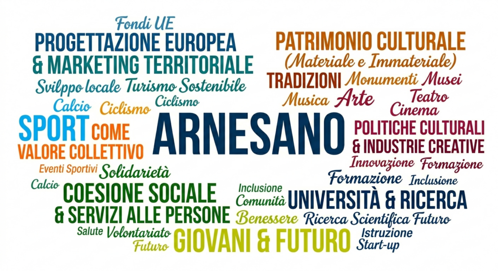La mia formazione e la mia esperienza mi portano a lavorare su temi precisi, dove posso essere efficace: progettazione europea e marketing territoriale, politiche culturali e sostegno alle industrie creative, valorizzazione del patrimonio materiale e immateriale, politiche per l’università e la ricerca, e una rete di servizi alle persone — giovani, famiglie, anziani, chi è in difficoltà — costruita sull’ascolto reale e non sulla burocrazia. E poi lo sport, che per me non è un lusso ma un fattore di coesione sociale.