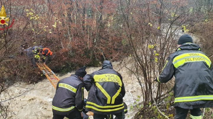 Cacciatori bloccati da un torrente in piena portati in salvo dai Vigili del Fuoco
