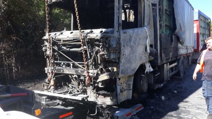 Camion di finocchi distrutto da incendio sulla Cassino-Sora