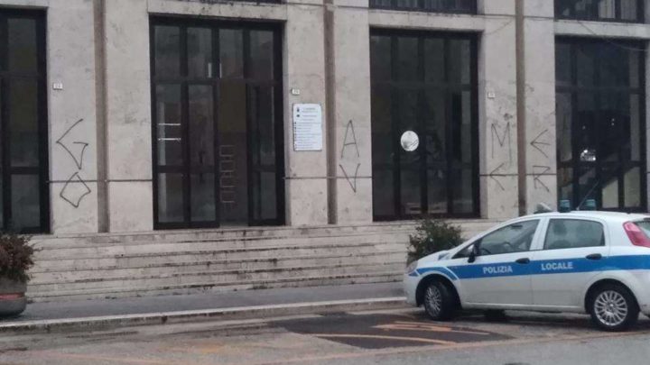 Il “Game over” al Sindaco espresso imbrattando la facciata del Municipio